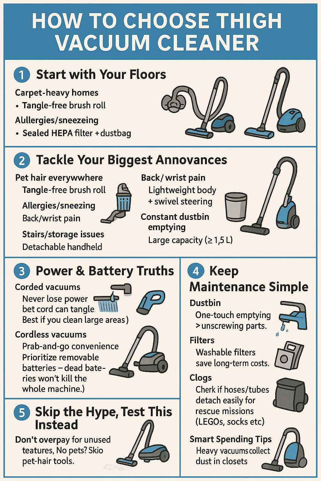 Tu je jednoduchý návod, ako správne vybrať vysávač pre váš domov pomocou každodenného jazyka: